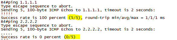 R4에서 1.1.1.1로는 통신이 되지만, 2.2.2.2로는 통신이 되지 않는 이유를 확인 하세요.