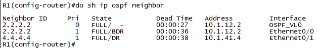 확인1) R1#show ip ospf neighbor 3개의 neighbor를 확인합니다.
