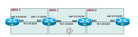 확인3) R4에서 1.1.1.1로는 통신이 되지만, 2.2.2.2로는 통신이 되지 않는 이유를 확인 하세요.R4#show ip route ospf로 보면, O IA경로는 보이지 않습니다.