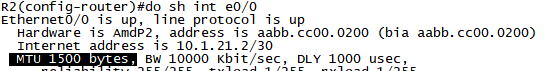문제5. R2의 S1/0의 MTU Size를 1500에서 1480으로 변경 해 보세요.