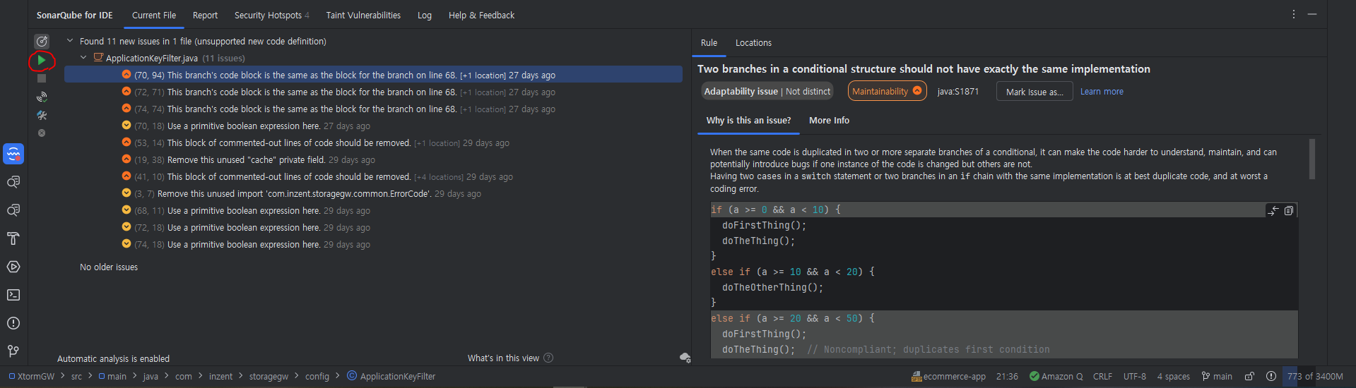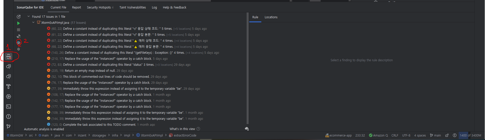 코드 분석을 확인할 수 있다.