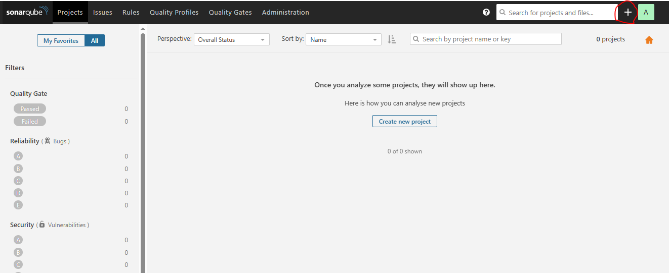 여기에 오른쪽 상단 + 버튼을 누르면 create new project가 나온다.
