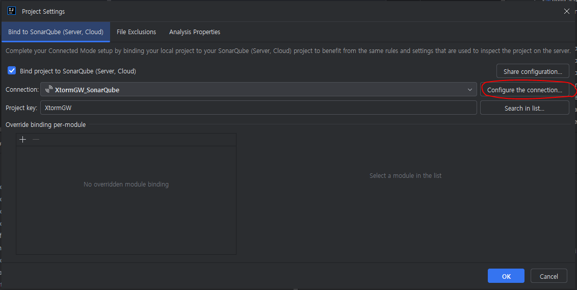저기서 Configure the connection 버튼을 누르면