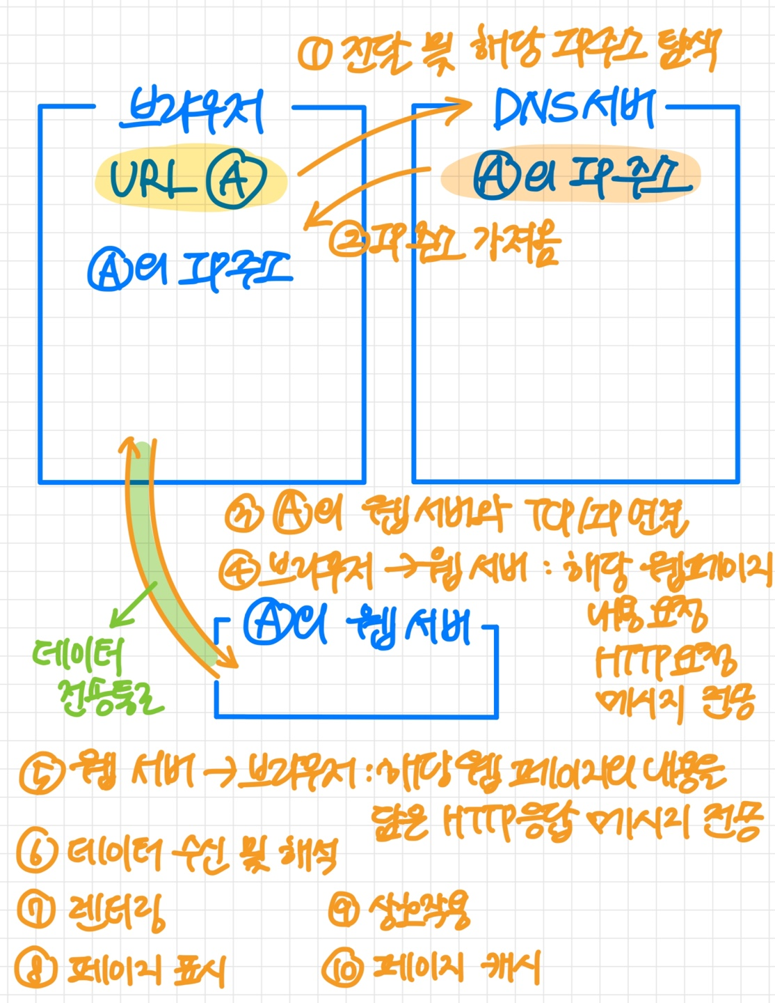브라우저는 웹 서버에게 입력된 URL에 해당하는 웹 페이지의 내용을 요청하는 HTTP 요청 메시지를 보낸다.