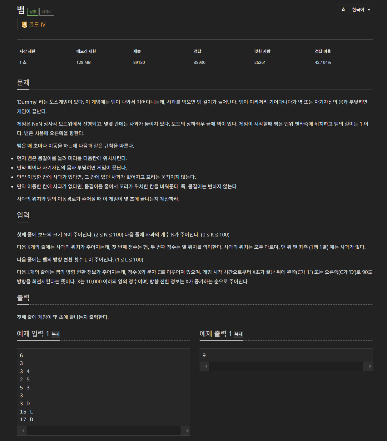 // 여기서 d는 현재의 뱀의 방향이고