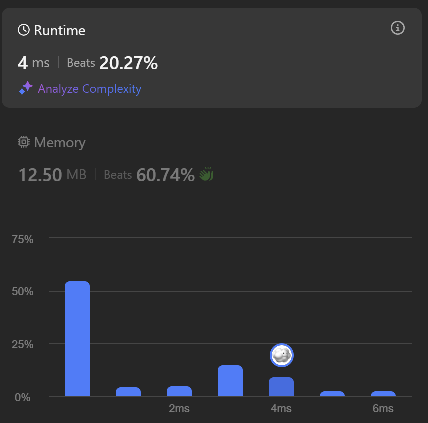 Time: 4ms (20.27%), Space: 12.5MB (60.74%)