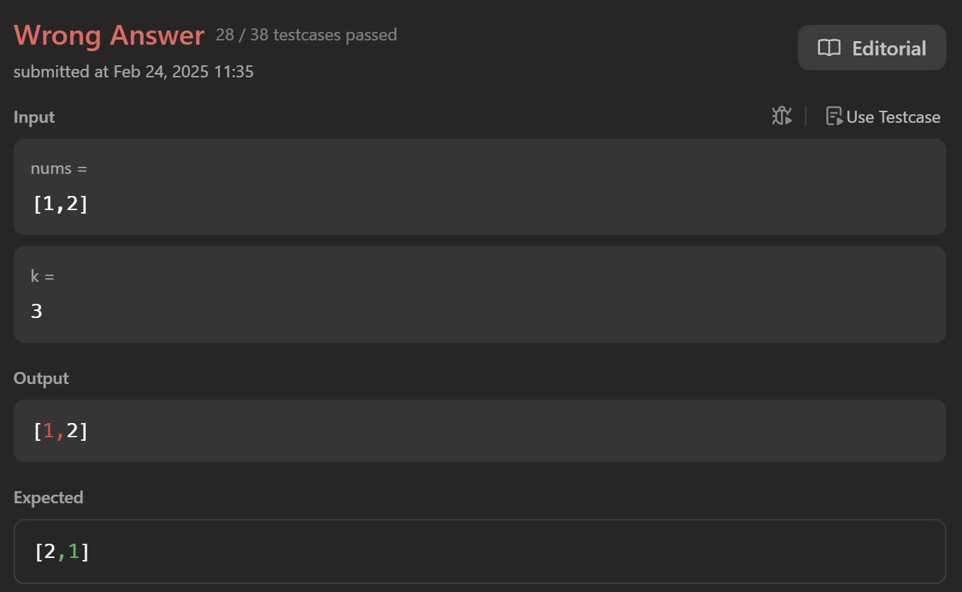 보다 큰 경우도 생각해주어야 한다. 그래서 k %= len(nums)