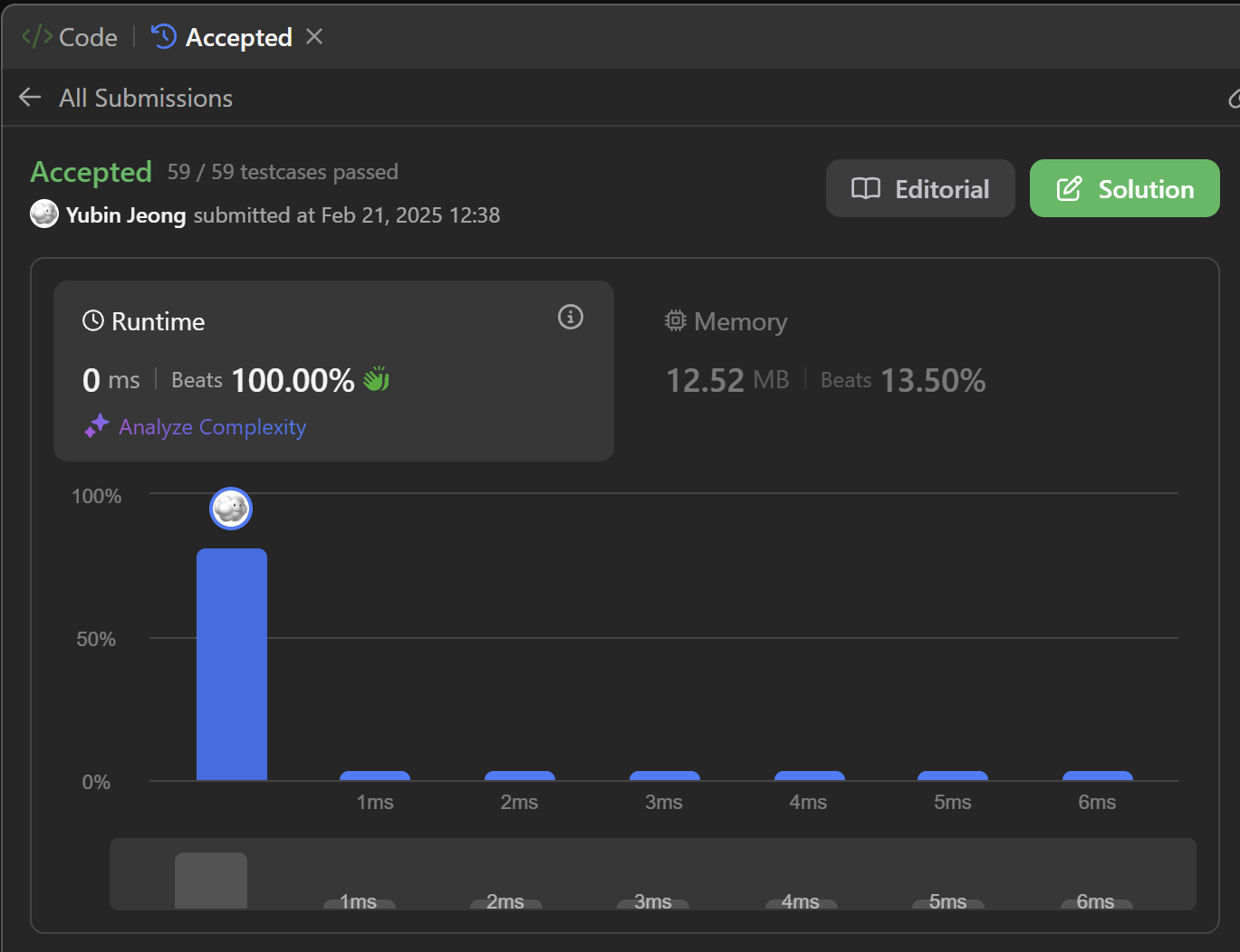 Time: 0 ms (100%), Space: 12.5 MB (13.5%)