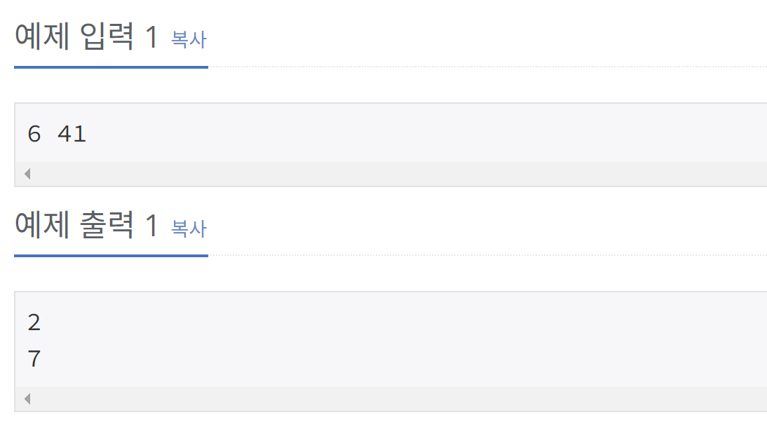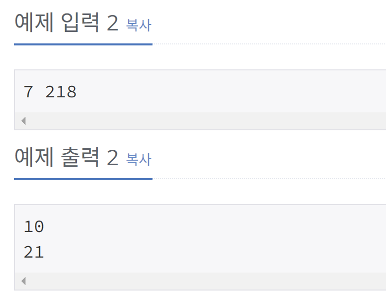 그때 눈에 들어온 게 두 번째 테스트케이스였다. 두 번째 테스트케이스를 넣으면 위와 같이 4개의 숫자가 나온다. 그래서 문제를 다시 읽어보면 다음과 같은 구절이 있다.