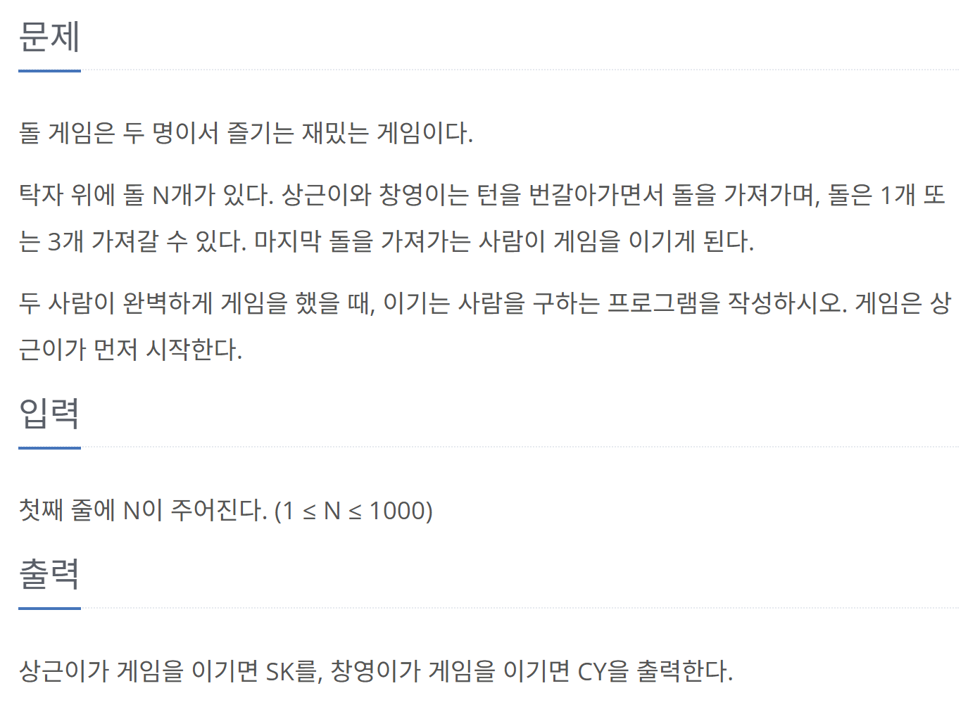 9655돌 게임실버 5https://www.acmicpc.net/problem/9655🔗