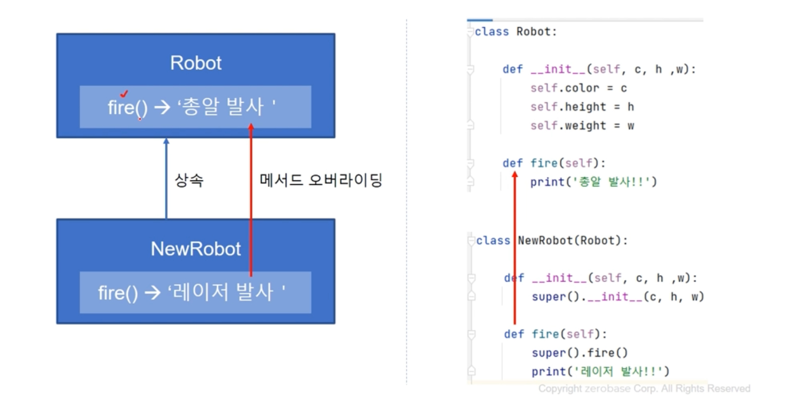 : 하위 클래스에서 상위 클래스의 매서드를 재정의(override)
