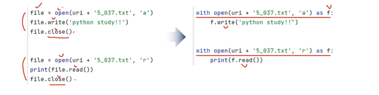 : 파일 닫기(close)를 생략 할 수 있음.