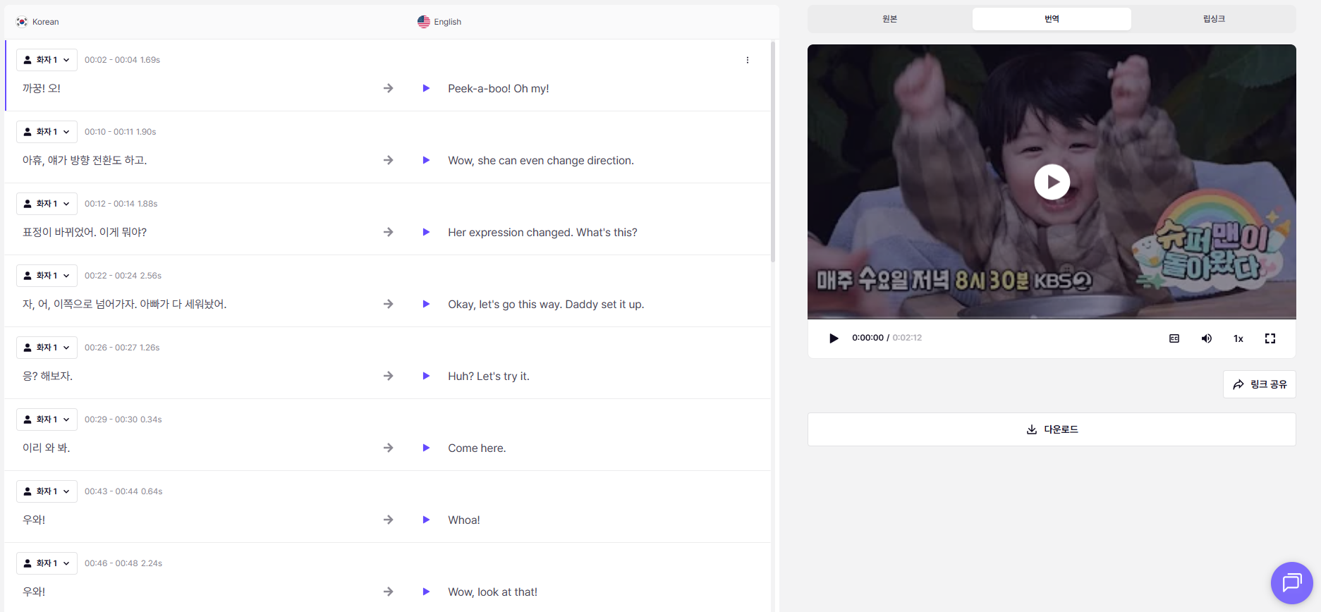 영상 길이·발화 타이밍을 고려한 번역이 이루어지는 것이 핵심이다.