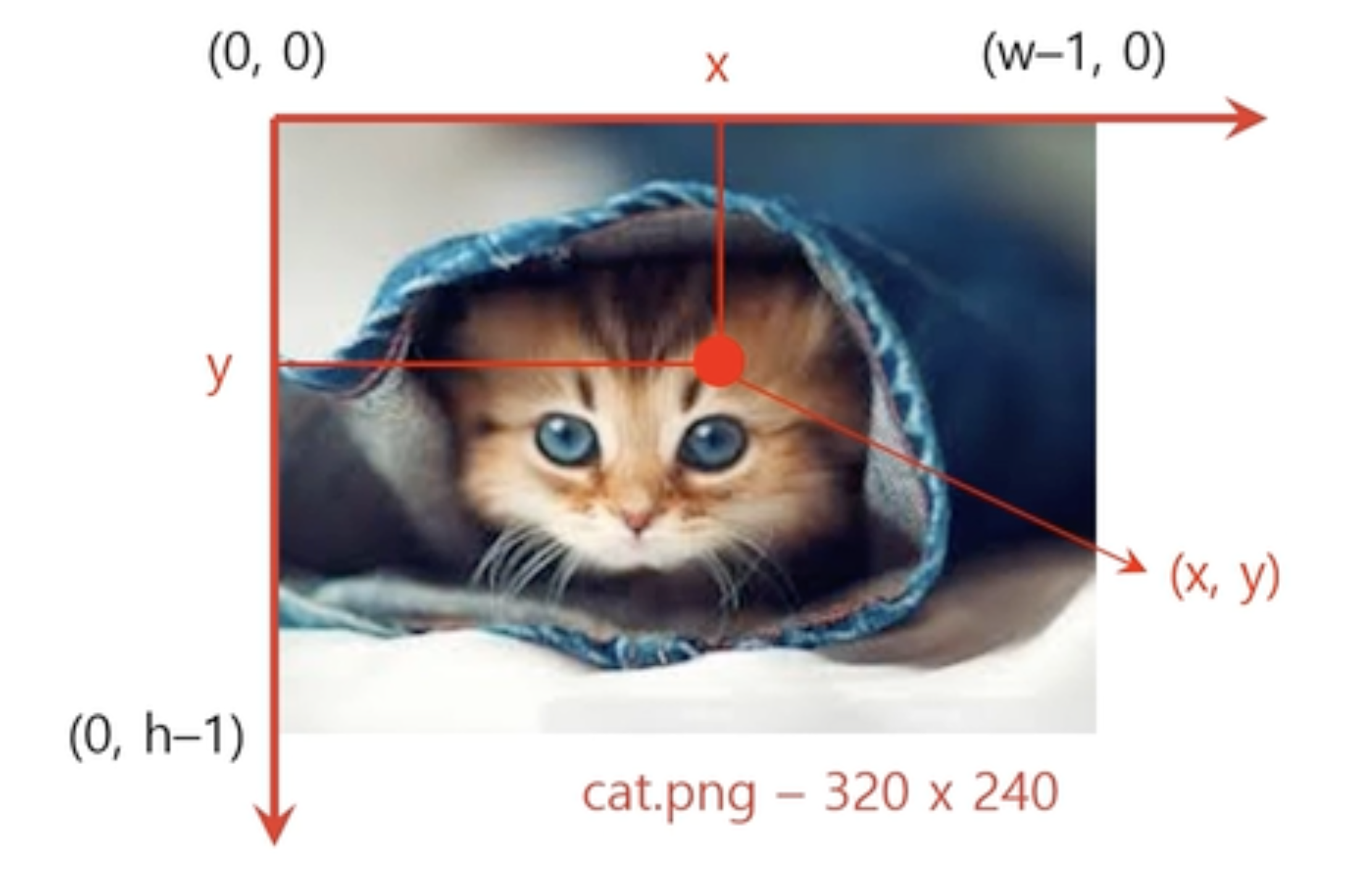 OpenCV는 좌상단을 기준으로 (0,0)부터 우하단(319, 239) 방향으로 증가하는 형태의 좌표계를 사용한다. 또한 이미지 데이터를 numpy array 타입으로 다루며, 인덱스는 행, 열 순서로 사용된다. 특히 색상의 경우 BGR 순서로 정의하기 때문에 주의하여야 한다.