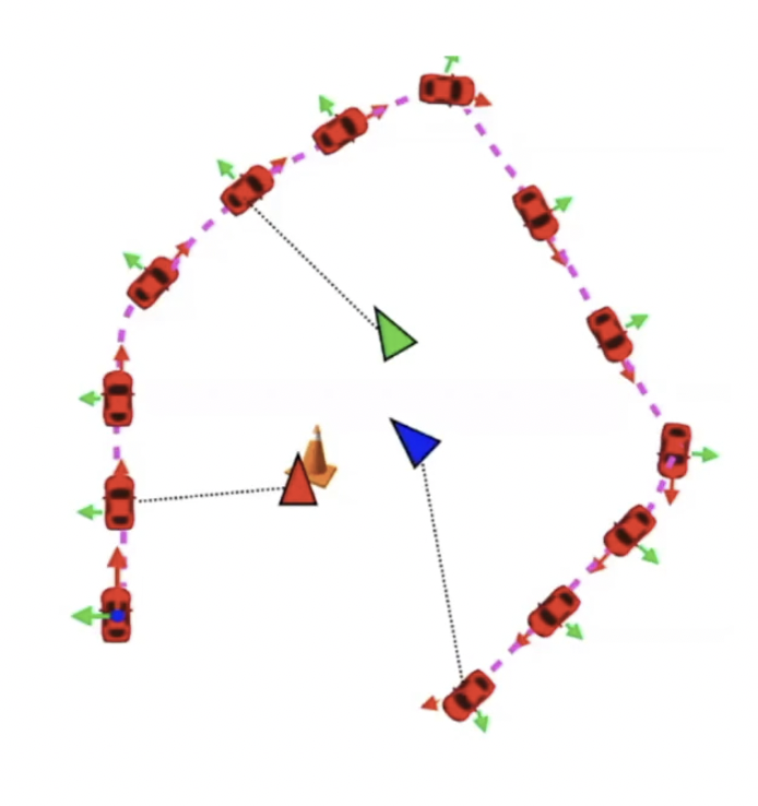 robot의 현재 state와 landmark에 위치에 관한 state를 입력으로 상대적인 위치를 표현한다.