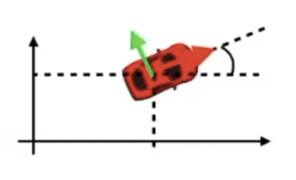 평면 위에 놓인 자동차는 위 식과 같은 형태로 modeling이 가능하다. 현재 차량의 위치()와 차량의 각도()로 정의될 수 있다.