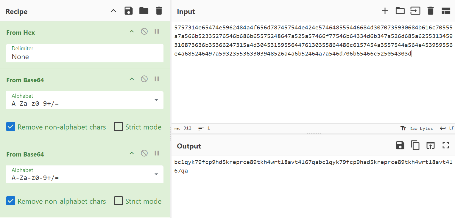 근데 길어도 너무 길다. 보통 지갑 주소는 26~35자인데 인코딩되어 있는 것 같다.