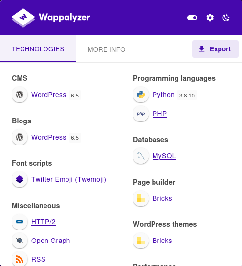 firefox add-on인 Wappalyzer를 통해 간단하게 웹페이지 구조를 파악할 수 있었다.