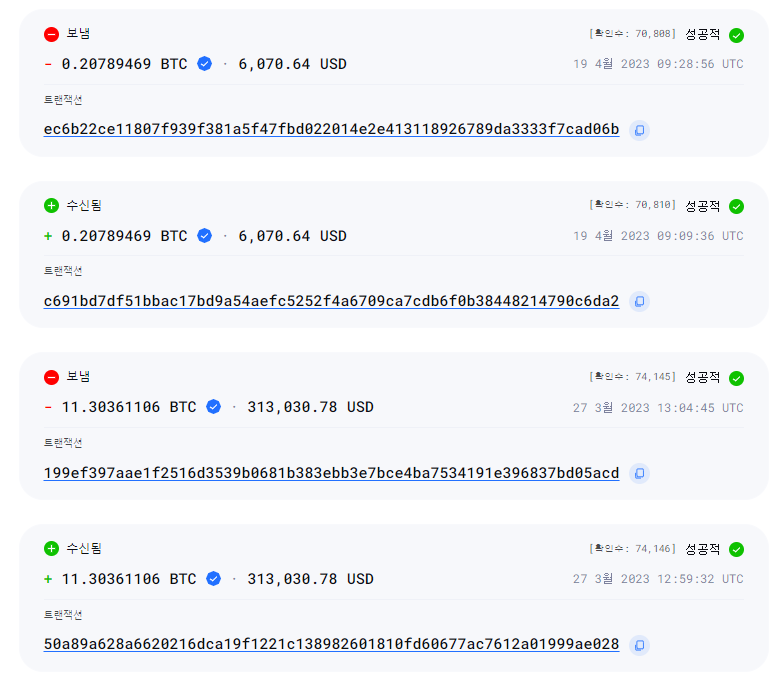 코인이 들어오고 나간 흔적이 보인다. 11 BTC이면..
