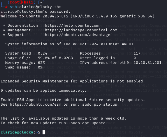 clarice 계정으로 접속을 성공했고 홈디렉토리에서 다섯번째 플래그를 찾았다.