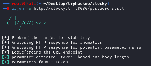 password_reset의 parameter는 arjun 이라는 툴로 token인 것을 확인했다.