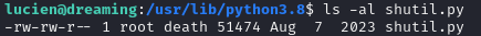 lucien 계정의 bash_history에서 봤던 shutil.py 라이브러리이다.