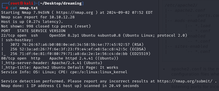 nmap 스캔 결과 22번 포트와 80번 포트가 열려있다.