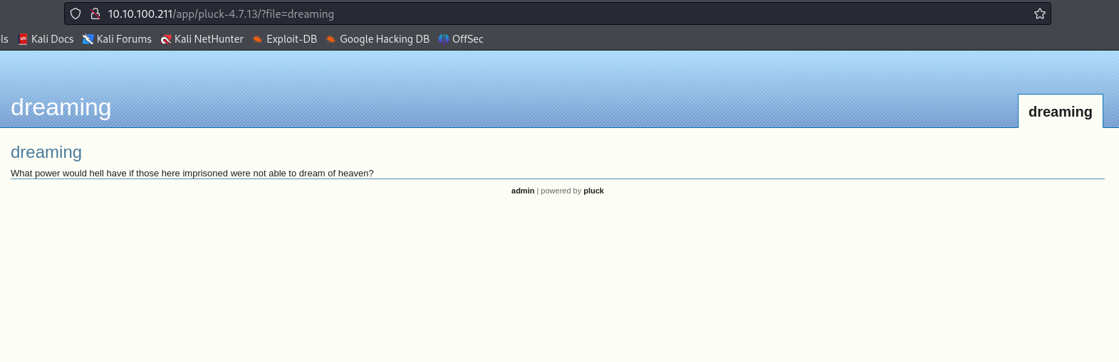 pluck-4.7.13 디렉토리를 클릭하면 위와 같이 dreaming 페이지를 확인할 수 있다.