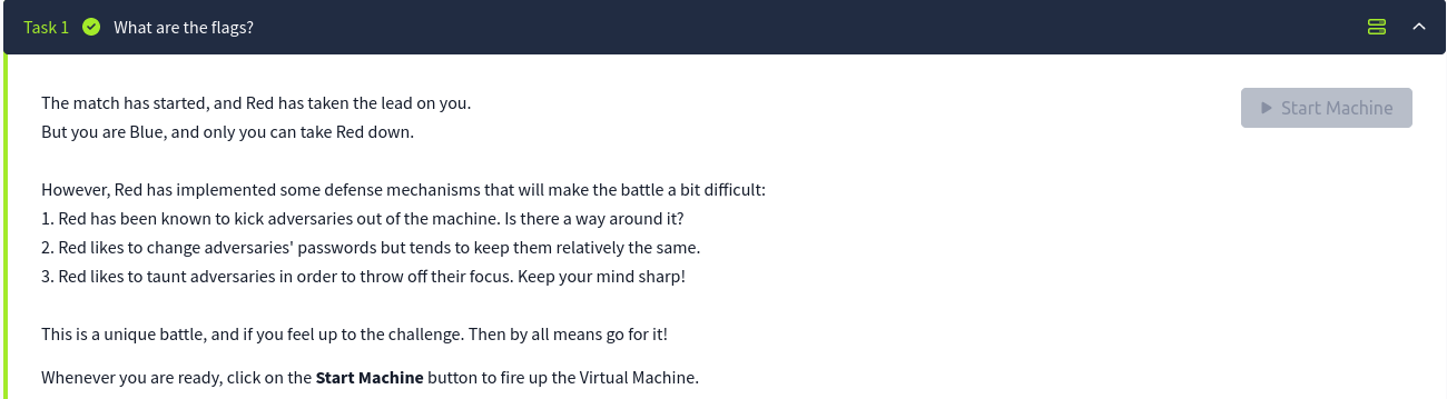 레드는 이미 머신을 장악하고 블루인 내가 머신을 장악하지 못하게 온갖 방해공작을 마련해두었다고 한다.