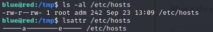 하지만 파일의 속성을 확인하는 lsattr 명령어로 보면 append-only 속성이 설정되어 기존 파일의 내용을 수정하거나 삭제하지는 못하고 오직 새로운 내용 추가만 가능하다고 한다.