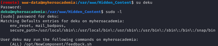 sudo로 /opt/NewComponent/feedback.sh 스크립트 실행이 가능했다.