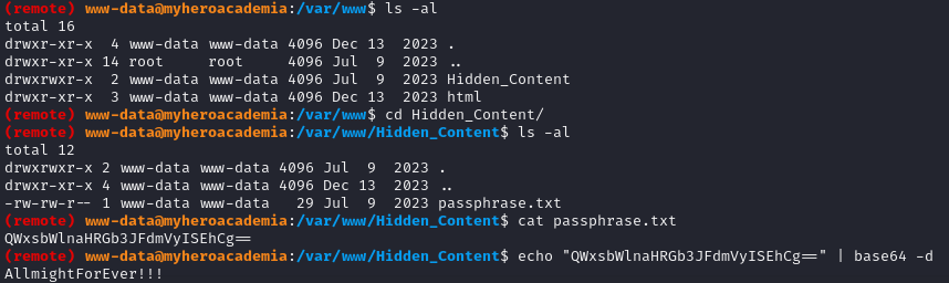 서버를 뒤지다가 Hidden_Content라는 폴더에서 passphrase 텍스트 파일을 발견했다.