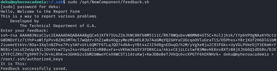 feedback 스크립트를 이용해서 root에 공개키를 주입했다.