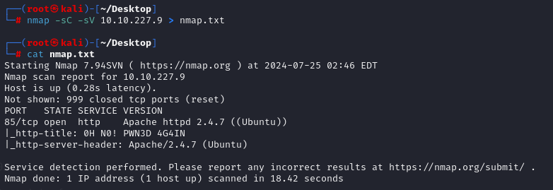웹서비스를 하고 있지만 특이하게 80번이 아닌 85번 포트에서 http 서비스가 구동되고 있었다.