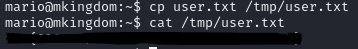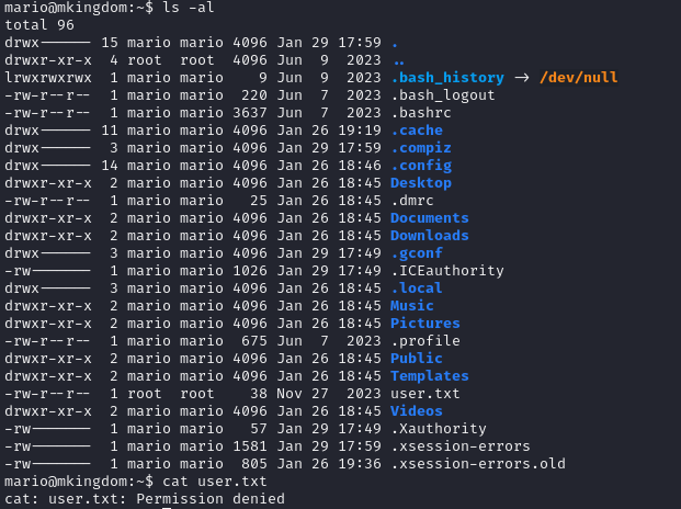 mario 디렉토리에 user.txt가 있었지만 cat으로 읽을 수 없었다.