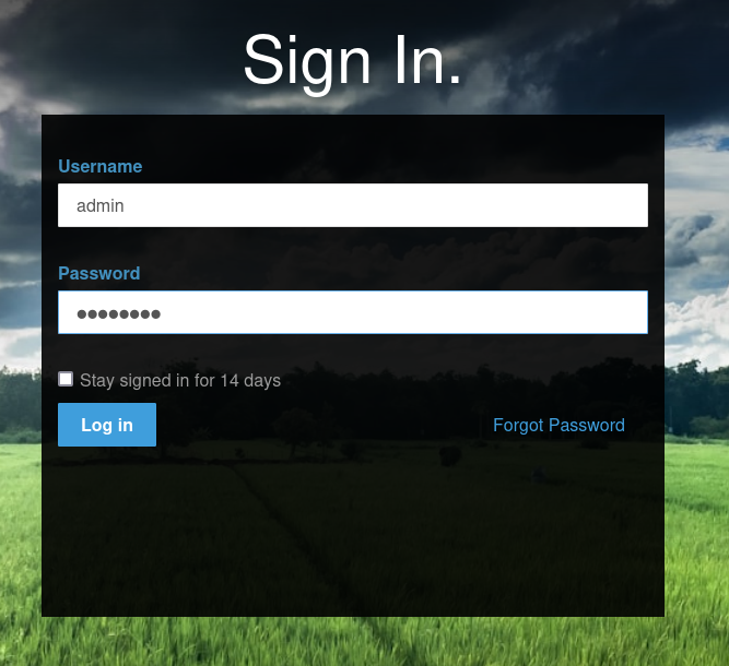 웹페이지에 있던 로그인 페이지. 구글링을 해보니 concrete5의 default user, password는 "admin", "admin"이라고 해서 입력했는데 실패했고 password를 "password"라고 입력했더니 admin계정으로 로그인이 됐다.