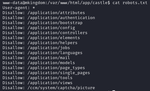 castle 폴더에 있는 robots.txt를 보니 application폴더에 접근을 못하도록 막아놨다.