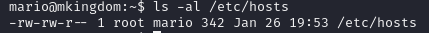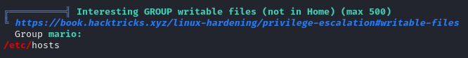 mario 계정으로 /etc/hosts 쓰기가 가능한 것을 알 수 있었다.