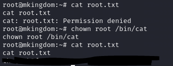 소유자를 root로 변경하고 root.txt 읽기 성공!!