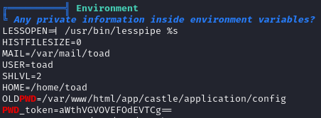 Environment쪽을 보면 PWD_token이라는 환경변수에 base64로 인코딩된 것 같은 문자열이 있다.