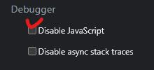위와 같은 항목이 보일텐데, Disable JavaScript