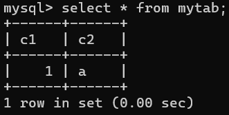 create table mytab(c1 int, c2 char);