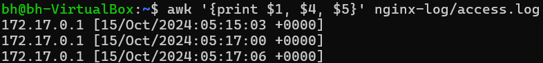 awk '{print $1, $4, $5}' nginx-log/access.log