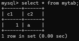 insert into mytab values(1, 'a');