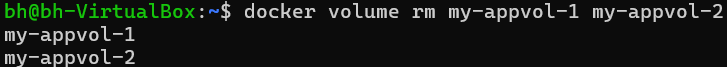 docker stop vol-test1 vol-test2 vol-test3docker rm vol-test1 vol-test2 vol-test3docker volume rm my-appvol-1 my-appvol-2