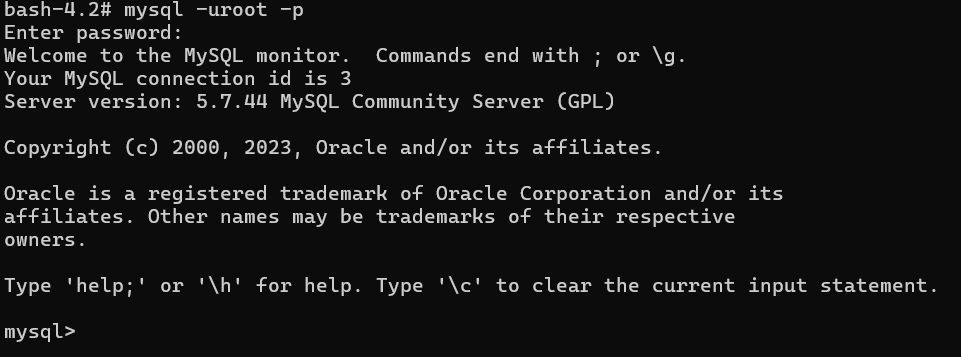docker exec -it mysql-server /bin/bash