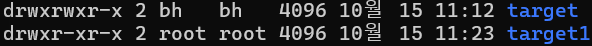 docker run -dit --name bind-test2 -v /home/bh/target:/var/log centos:8docker run -dit --name bind-test3 -v /home/bh/target1:/var/log centos:8/home/bh/target1 디렉토리가 root의 소유로 생성된다.