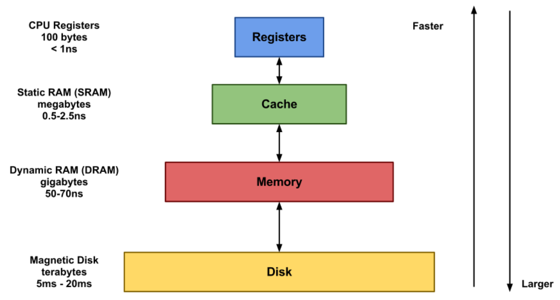 - 단점 : Memory의 비용이 Disk에 비해 비싸기 때문에, 많은 용량을 사용하기 어렵다.